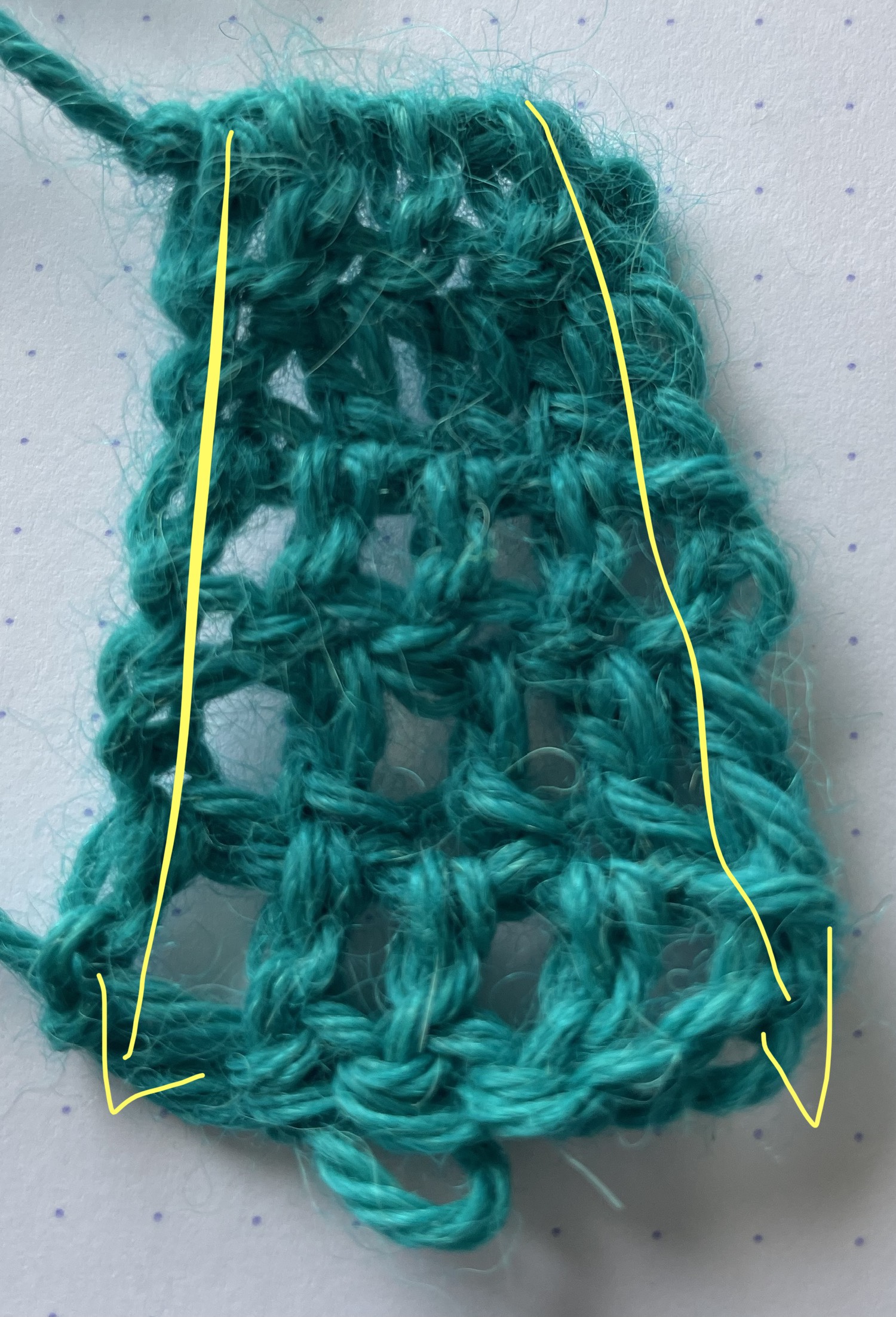 Once a chain is made, there is a maximum width that this chain can achieve. This is brilliant for items that require strength such as bag straps, but if you are unfortunate enough to have the neck in a crochet jumper too tight, you will not get your head through, or the top of the sock doesn’t fit over a calf, or the square you’re working on turns into a rhombus. These things are a massive pain.